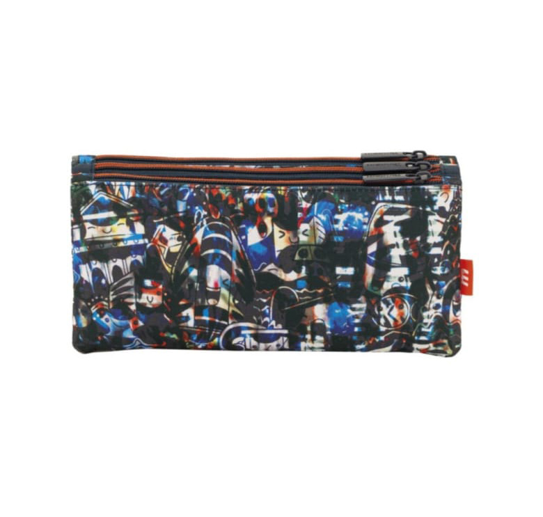 Estuche escolar con 3 bolsillos independientes, separados mediante Cremalleras.