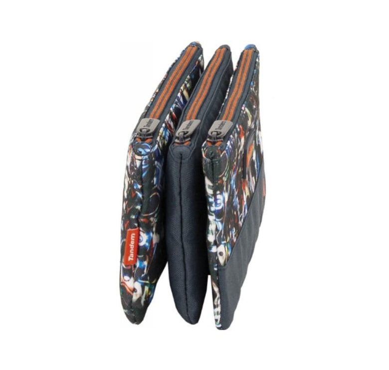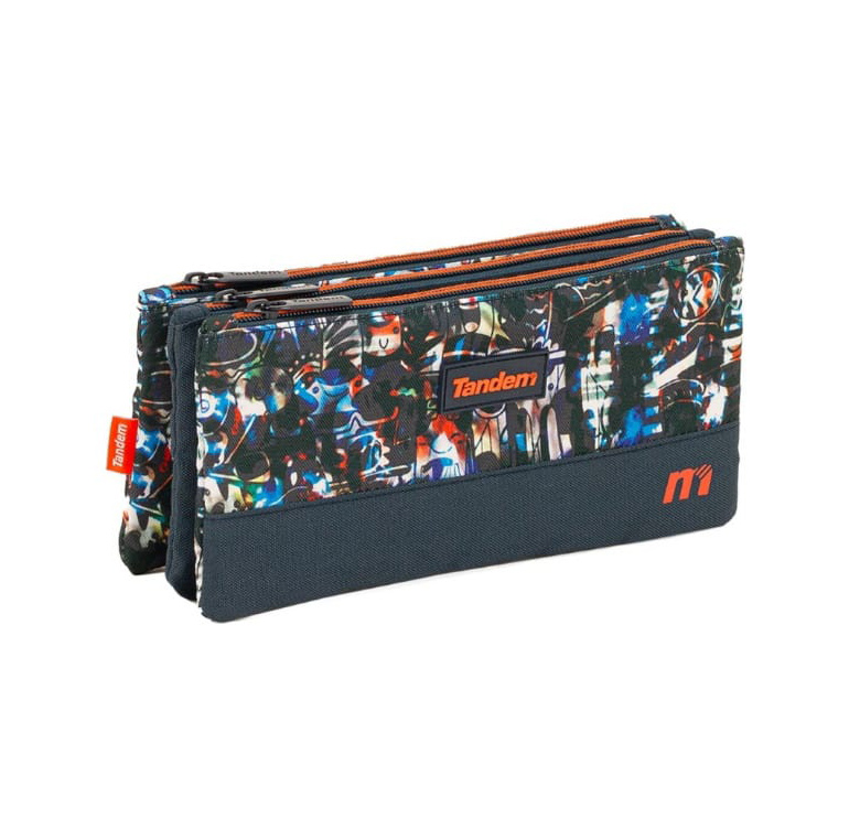 Estuche escolar con 3 bolsillos independientes, separados mediante cremalleras.
